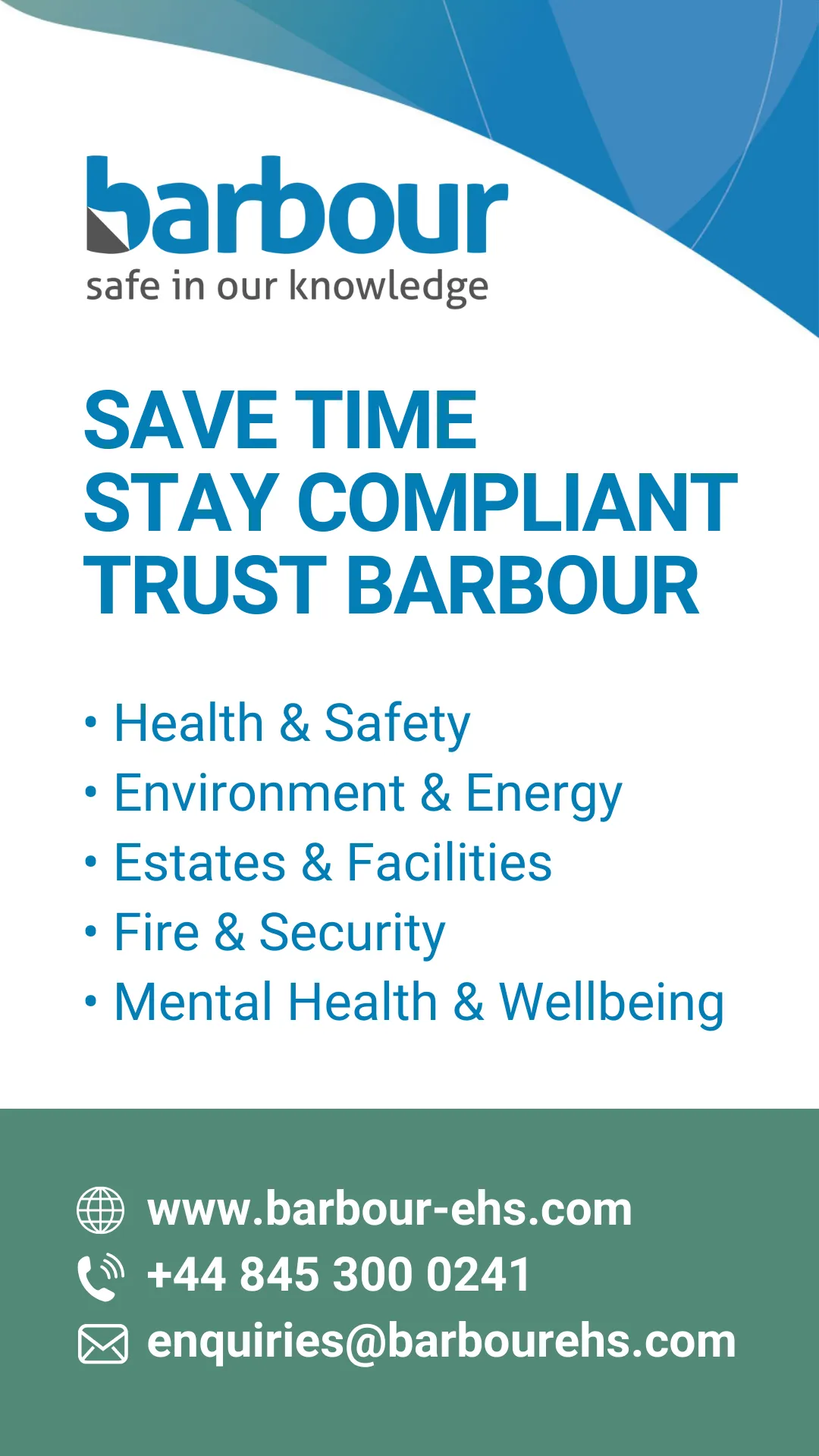 Barbour EHS is the health & safety information service that helps you to avoid missing essential legislation by delivering the health & safety regulation updates relevant to you, direct to your inbox - all while saving you time and money.